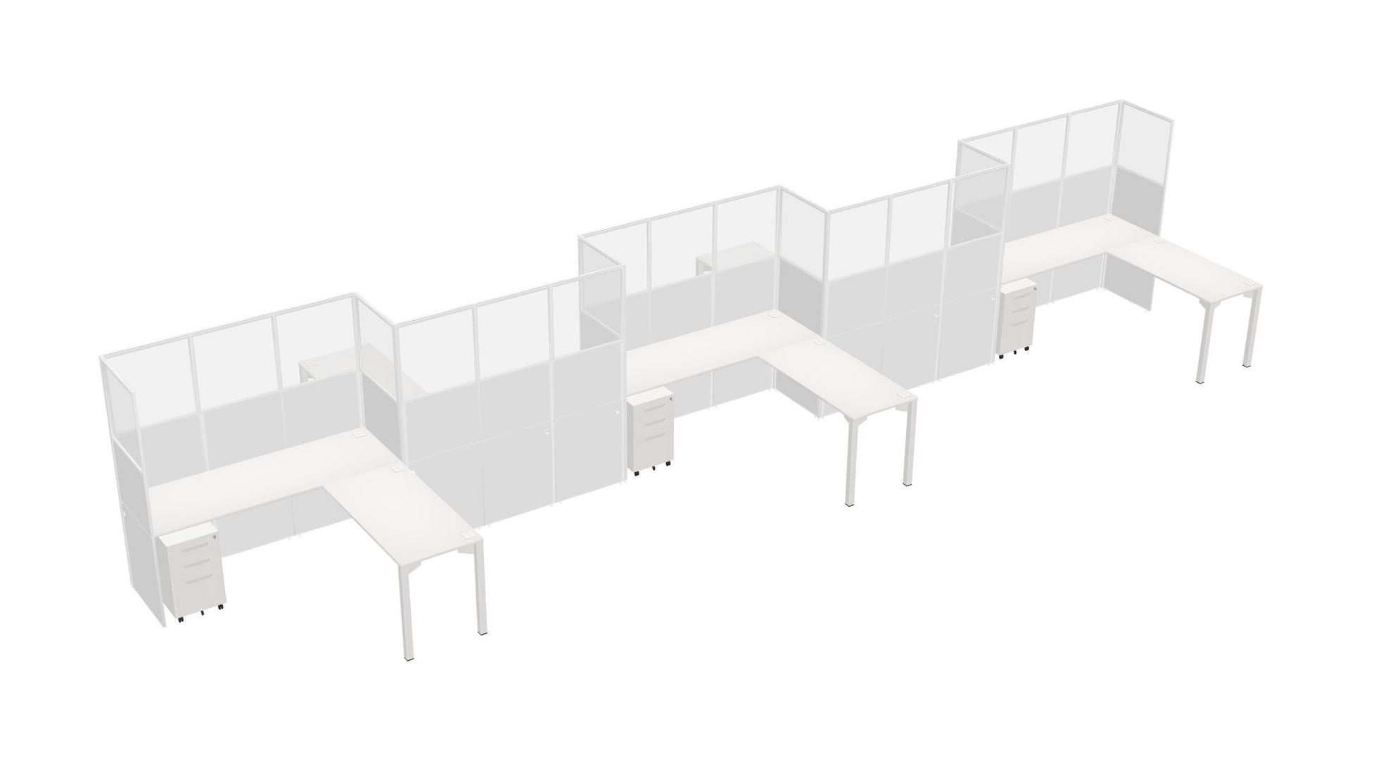 Postes De Travail Blancs En L Pour 5 Personnes - Formation En Zigzag + Tiroirs Mobiles En Métal Blanc + Retour De Panneau