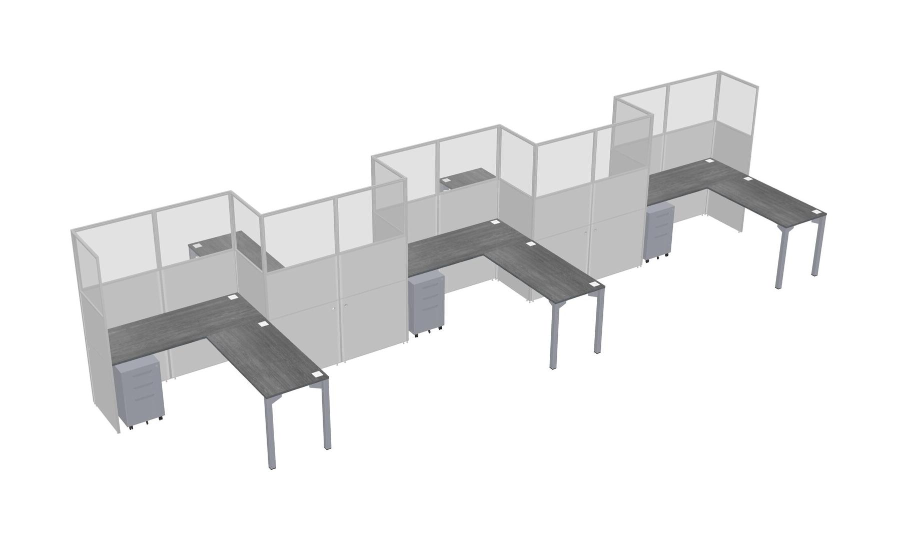 Postes De Travail En L Gris Pour 5 Personnes - Formation En Zigzag + Tiroirs Mobiles En Métal Gris + Retour De Panneau