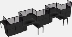 Postes De Travail En L Noirs Pour 5 Personnes - Formation En Zigzag + Tiroirs Mobiles En Métal Noir + Retour De Panneau