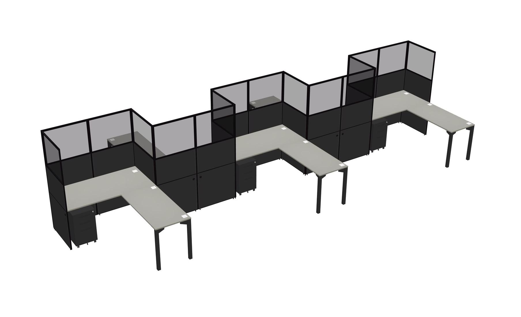 Postes De Travail En L Grey Shadows Pour 5 Personnes - Formation En Zigzag + Tiroirs Mobiles En Métal Noir + Retour De Panneau