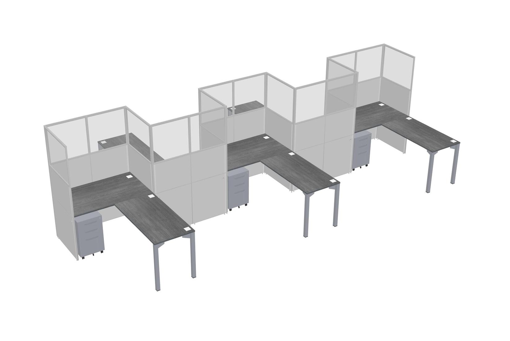 Postes De Travail En L Gris Pour 5 Personnes - Formation En Zigzag + Tiroirs Mobiles En Métal Gris + Retour De Panneau