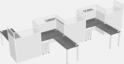 Postes De Travail En L Gris Pour 5 Personnes - Formation En Zigzag + Tiroirs Mobiles En Métal Blanc + Retour De Panneau