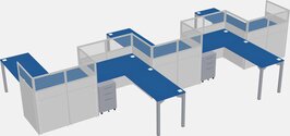 Postes De Travail En L Prism Blue Pour 5 Personnes - Formation En Zigzag + Tiroirs Mobiles En Métal Gris + Retour De Panneau