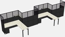 Postes De Travail En L Heinne Holz Pour 4 Personnes - Disposition En Zigzag + Tiroirs Mobiles En Métal Noir + Retour De Panneau