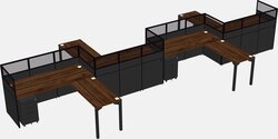 Postes De Travail En L En Noyer Columbia Pour 4 Personnes - Formation En Zigzag + Tiroirs Mobiles En Métal Noir + Retour De Panneau