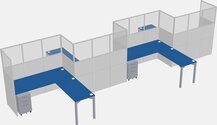 Postes De Travail En L Prism Blue Pour 4 Personnes - Formation En Zigzag + Tiroirs Mobiles En Métal Gris + Retour De Panneau