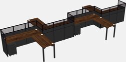 Postes De Travail En L En Noyer Columbia Pour 4 Personnes - Formation En Zigzag + Tiroirs Mobiles En Métal Noir + Retour De Panneau