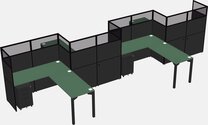 Postes De Travail En L Verts Pour 4 Personnes - Formation En Zigzag + Tiroirs Mobiles En Métal Noir + Retour De Panneau