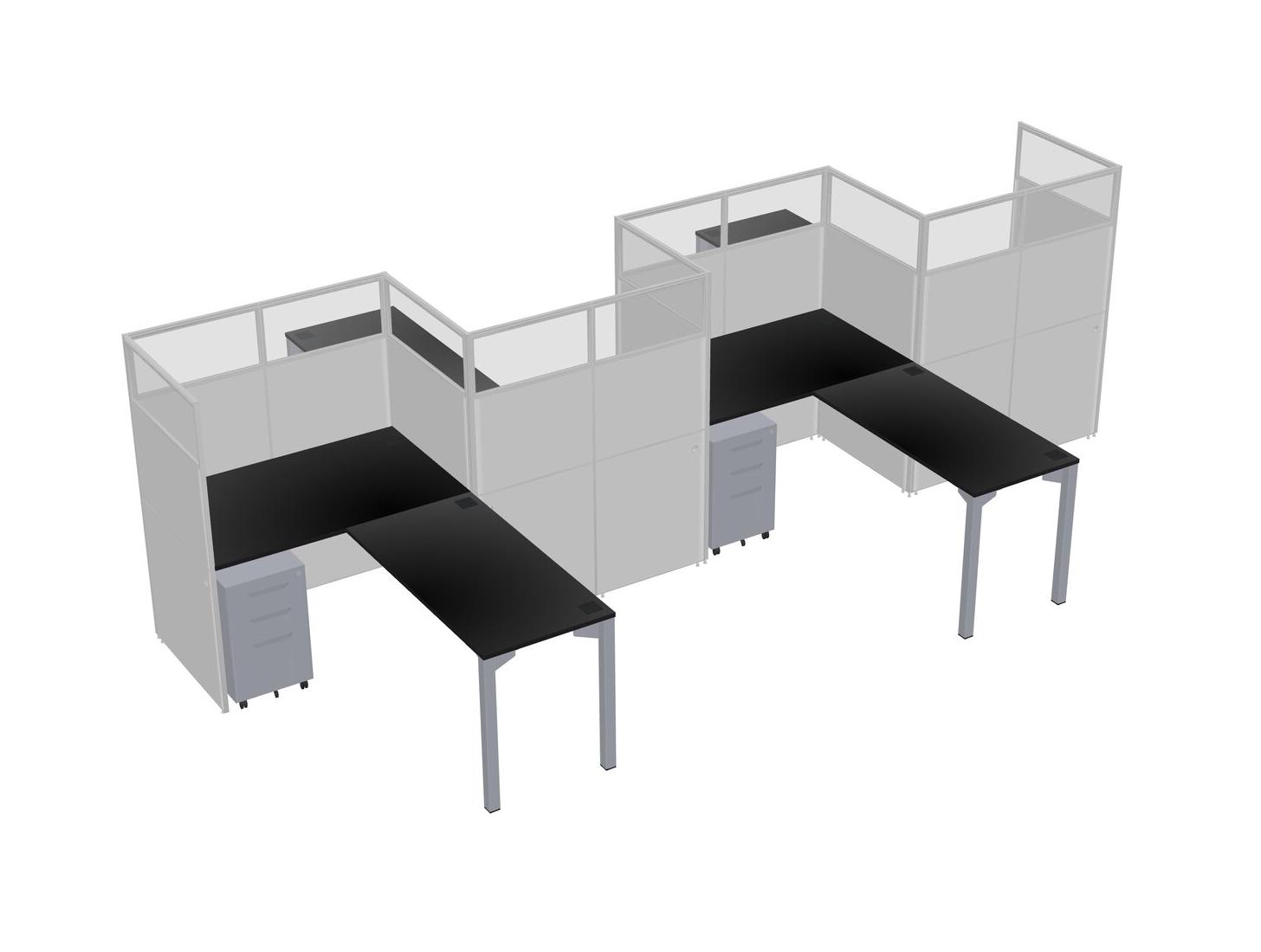 Postes De Travail En L Noirs Pour 4 Personnes - Formation En Zigzag + Tiroirs Mobiles En Métal Gris + Retour De Panneau
