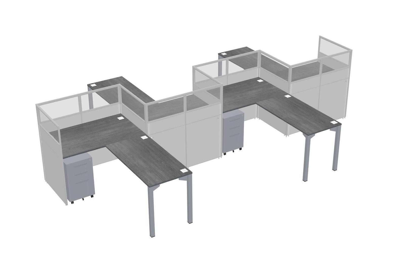 Postes De Travail En L Gris Pour 4 Personnes - Formation En Zigzag + Tiroirs Mobiles En Métal Gris + Retour De Panneau
