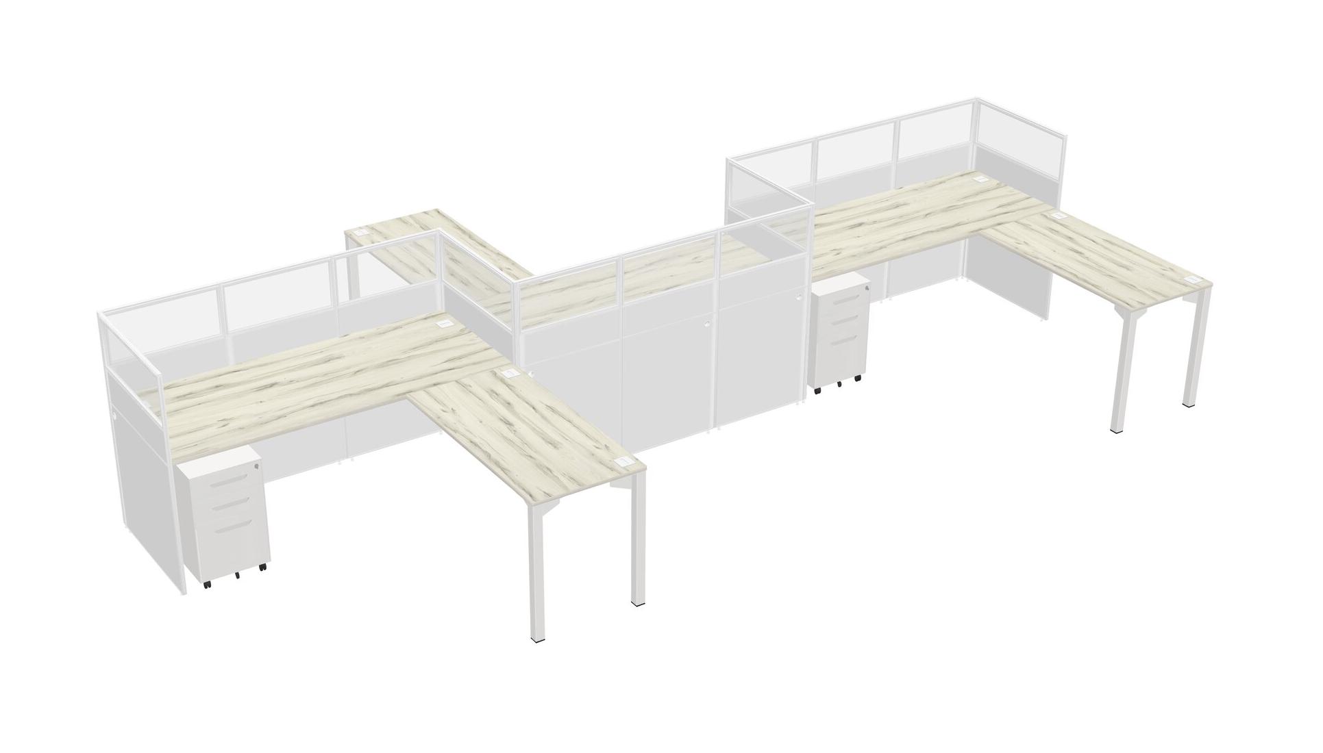 Postes De Travail En L Heinne Holz Pour 3 Personnes - Disposition En Zigzag + Tiroirs Mobiles En Métal Blanc + Retour De Panneau