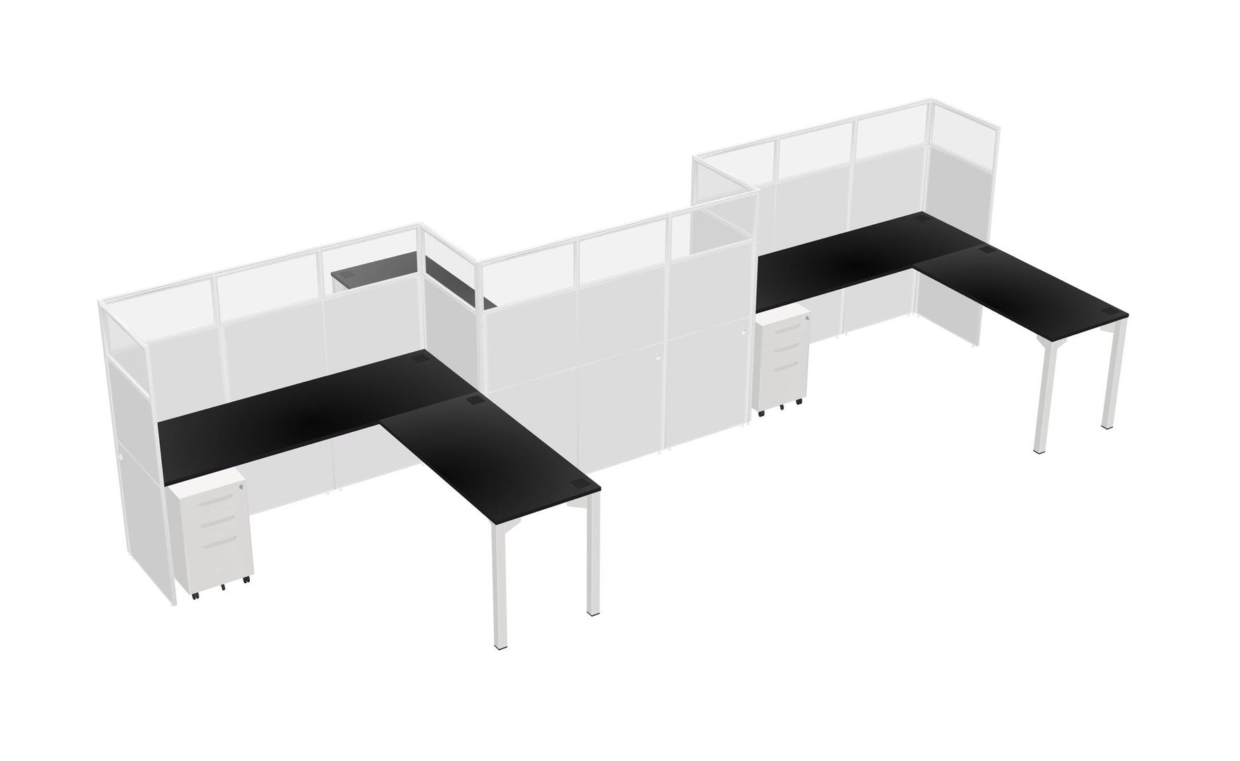 Postes De Travail En L Noirs Pour 3 Personnes - Formation En Zigzag + Tiroirs Mobiles En Métal Blanc + Retour De Panneau