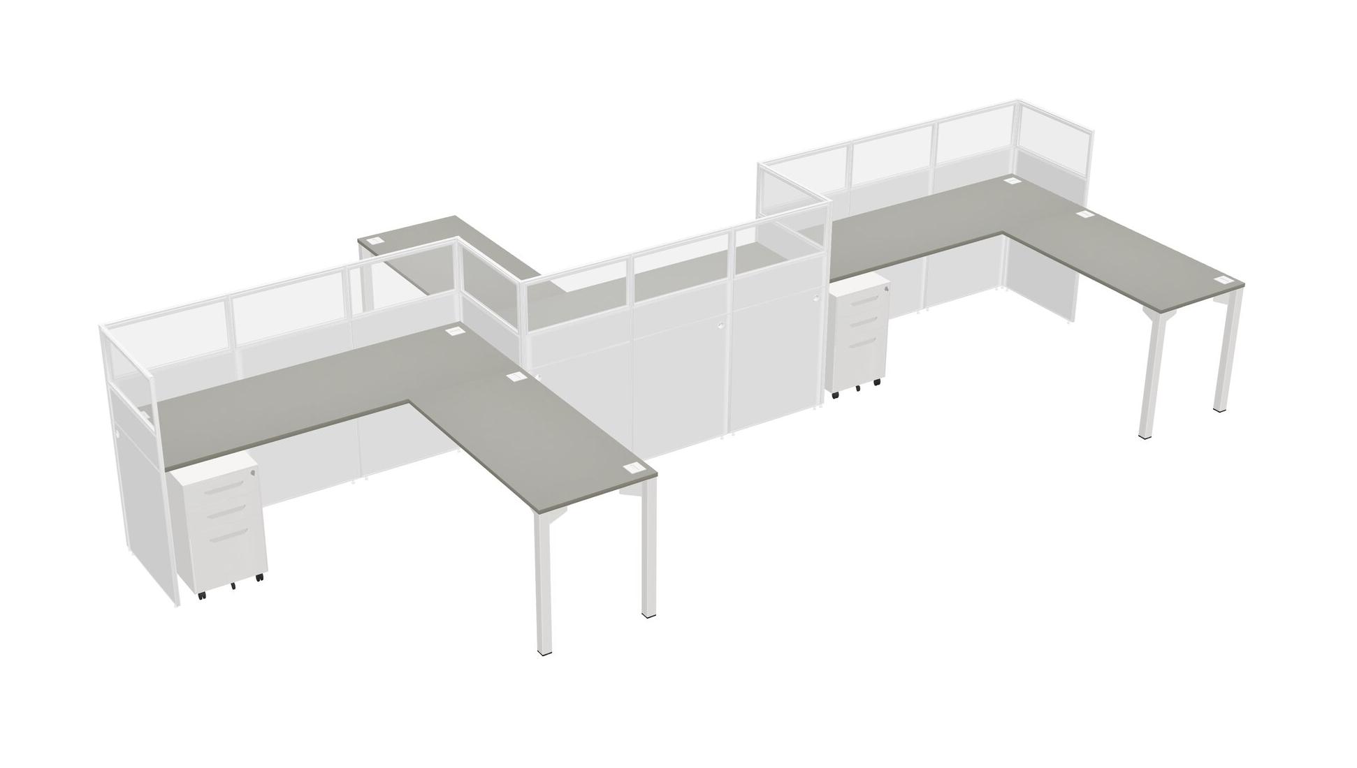 Postes De Travail En L Grey Shadows Pour 3 Personnes - Formation En Zigzag + Tiroirs Mobiles En Métal Blanc + Retour De Panneau