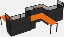 Postes De Travail En L Orange Pour 3 Personnes - Formation En Zigzag + Tiroirs Mobiles En Métal Noir + Retour De Panneau