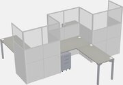 Postes De Travail En L Grey Shadows Pour 3 Personnes - Formation En Zigzag + Tiroirs Mobiles En Métal Gris + Retour De Panneau