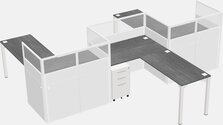 Postes De Travail En L Gris Pour 3 Personnes - Formation En Zigzag + Tiroirs Mobiles En Métal Blanc + Retour De Panneau