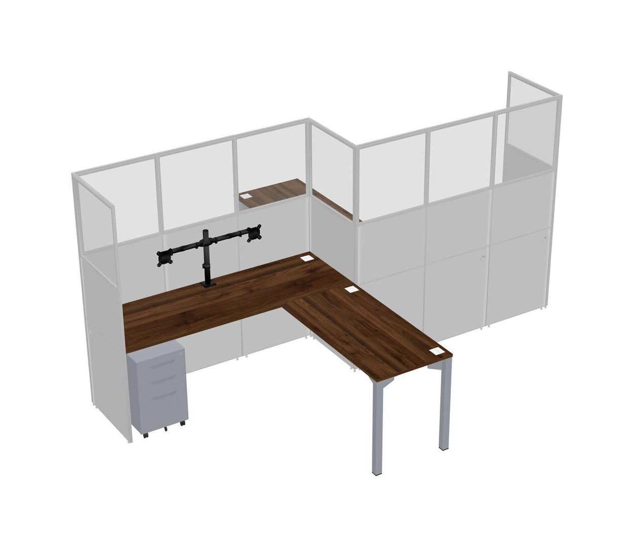 Postes De Travail En L En Noyer Columbia Pour 2 Personnes - Formation En Zigzag + Tiroirs Mobiles En Métal Gris + Retour De Panneau