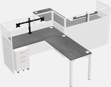 Postes De Travail En L Gris Pour 2 Personnes - Formation En Zigzag + Tiroirs Mobiles En Métal Blanc + Retour De Panneau