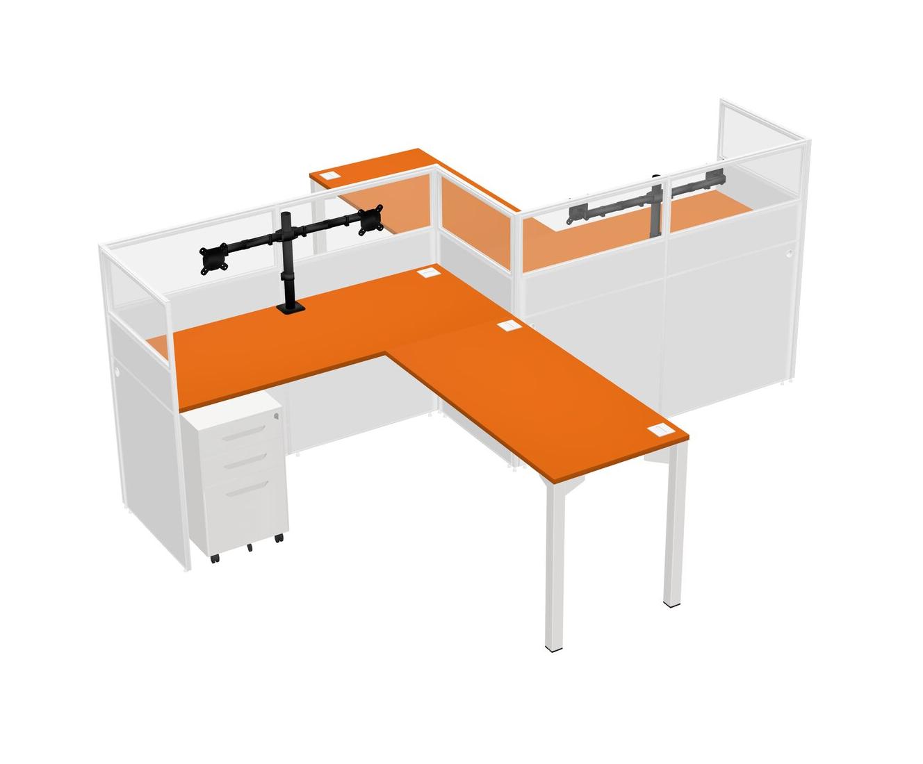 Postes De Travail En L Orange Pour 2 Personnes - Formation En Zigzag + Tiroirs Mobiles En Métal Blanc + Retour De Panneau