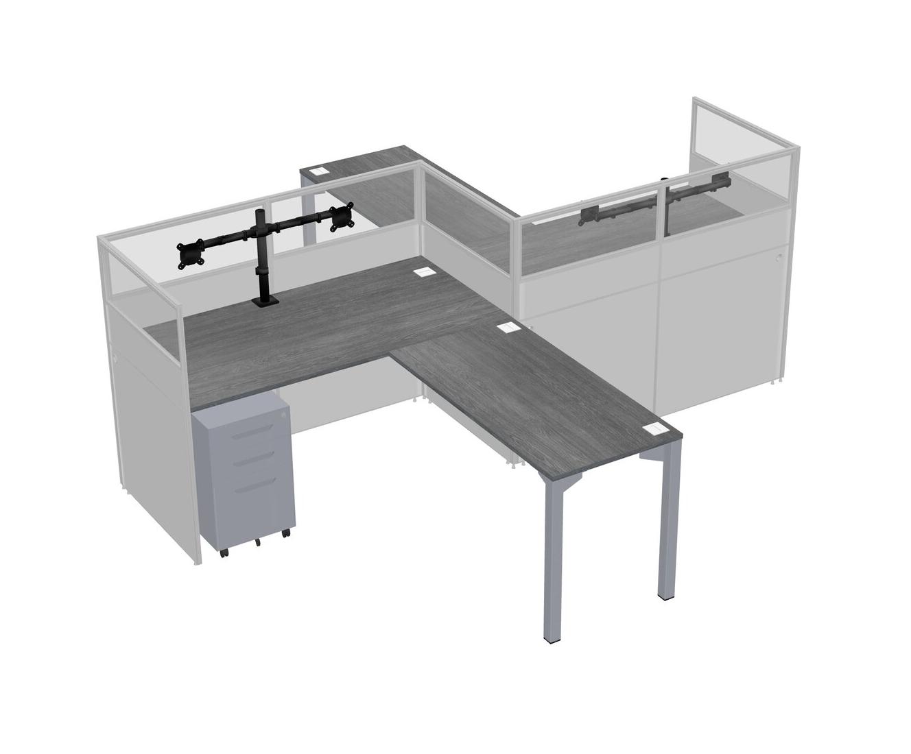 Postes De Travail En L Gris Pour 2 Personnes - Formation En Zigzag + Tiroirs Mobiles En Métal Gris + Retour De Panneau