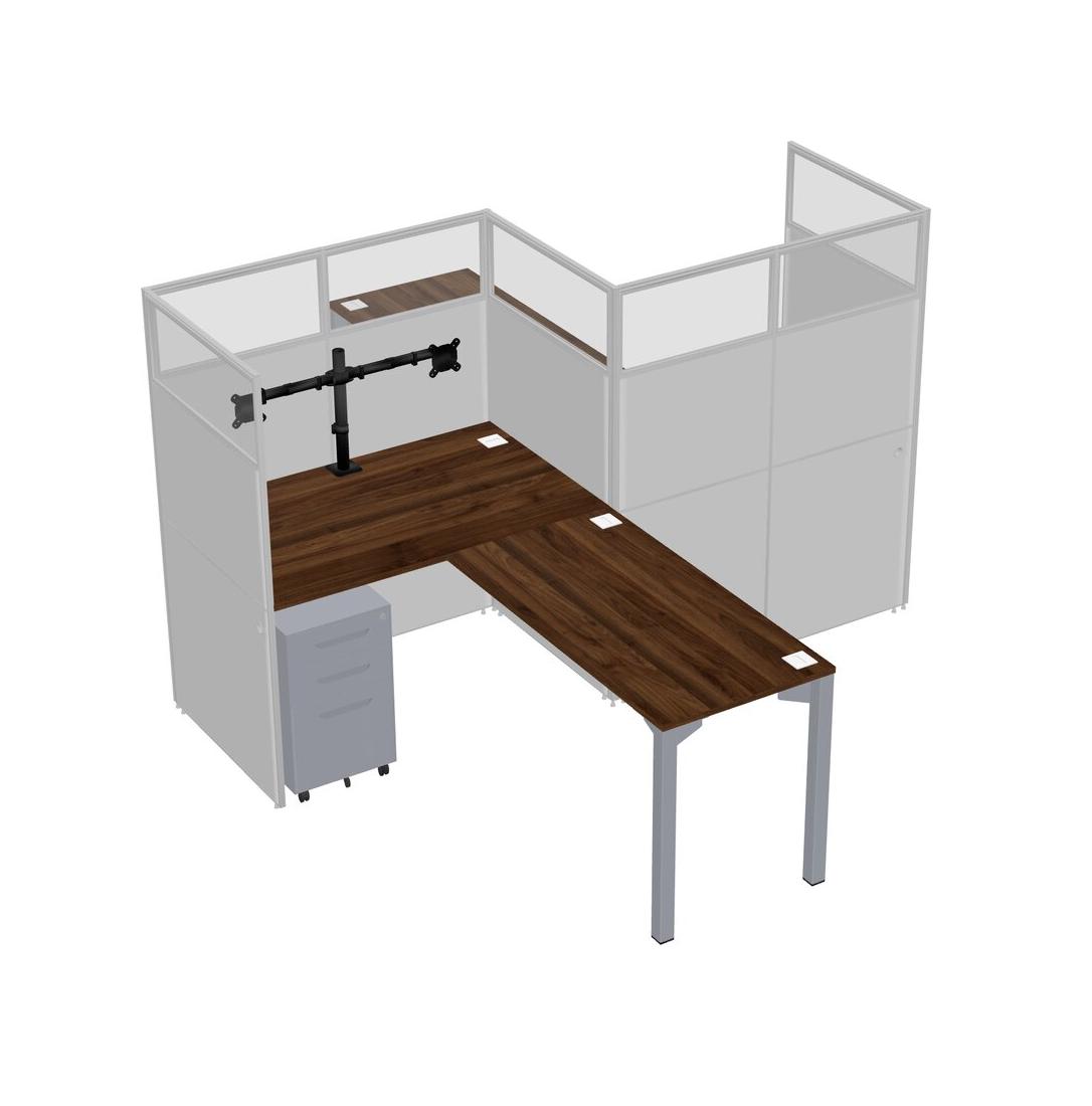 Postes De Travail En L En Noyer Columbia Pour 2 Personnes - Formation En Zigzag + Tiroirs Mobiles En Métal Gris + Retour De Panneau