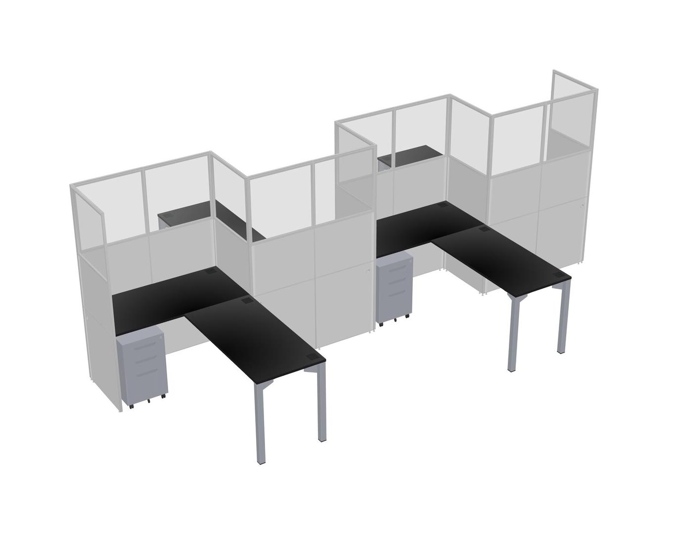 Postes De Travail En L Noirs Pour 4 Personnes - Formation En Zigzag + Tiroirs Mobiles En Métal Gris + Retour De Panneau