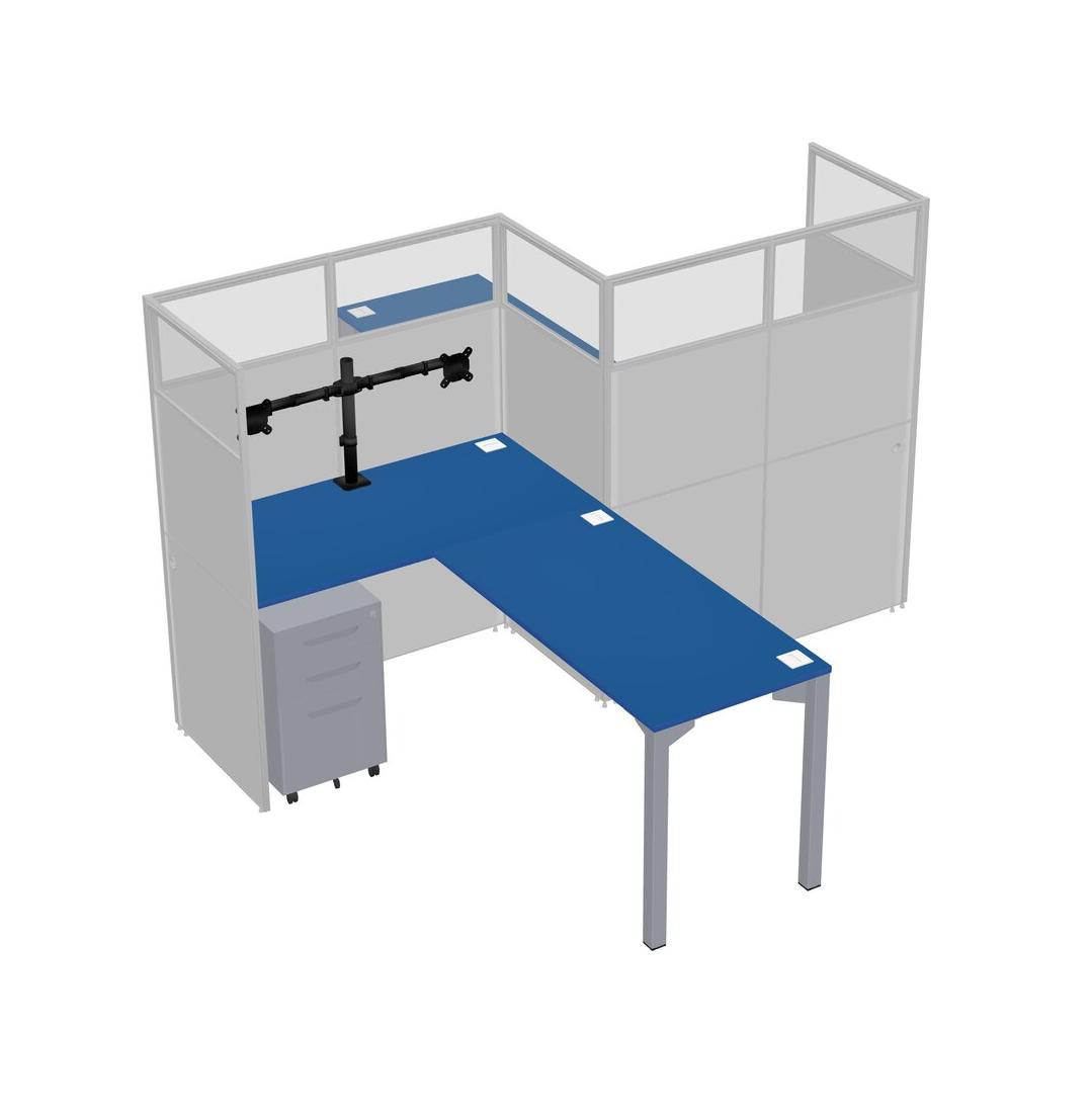 Postes De Travail En L Prism Blue Pour 2 Personnes - Formation En Zigzag + Tiroirs Mobiles En Métal Gris + Retour De Panneau