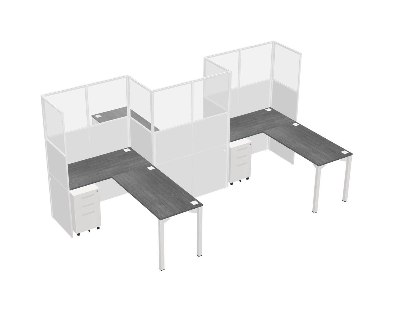 Postes De Travail En L Gris Pour 3 Personnes - Formation En Zigzag + Tiroirs Mobiles En Métal Blanc + Retour De Panneau