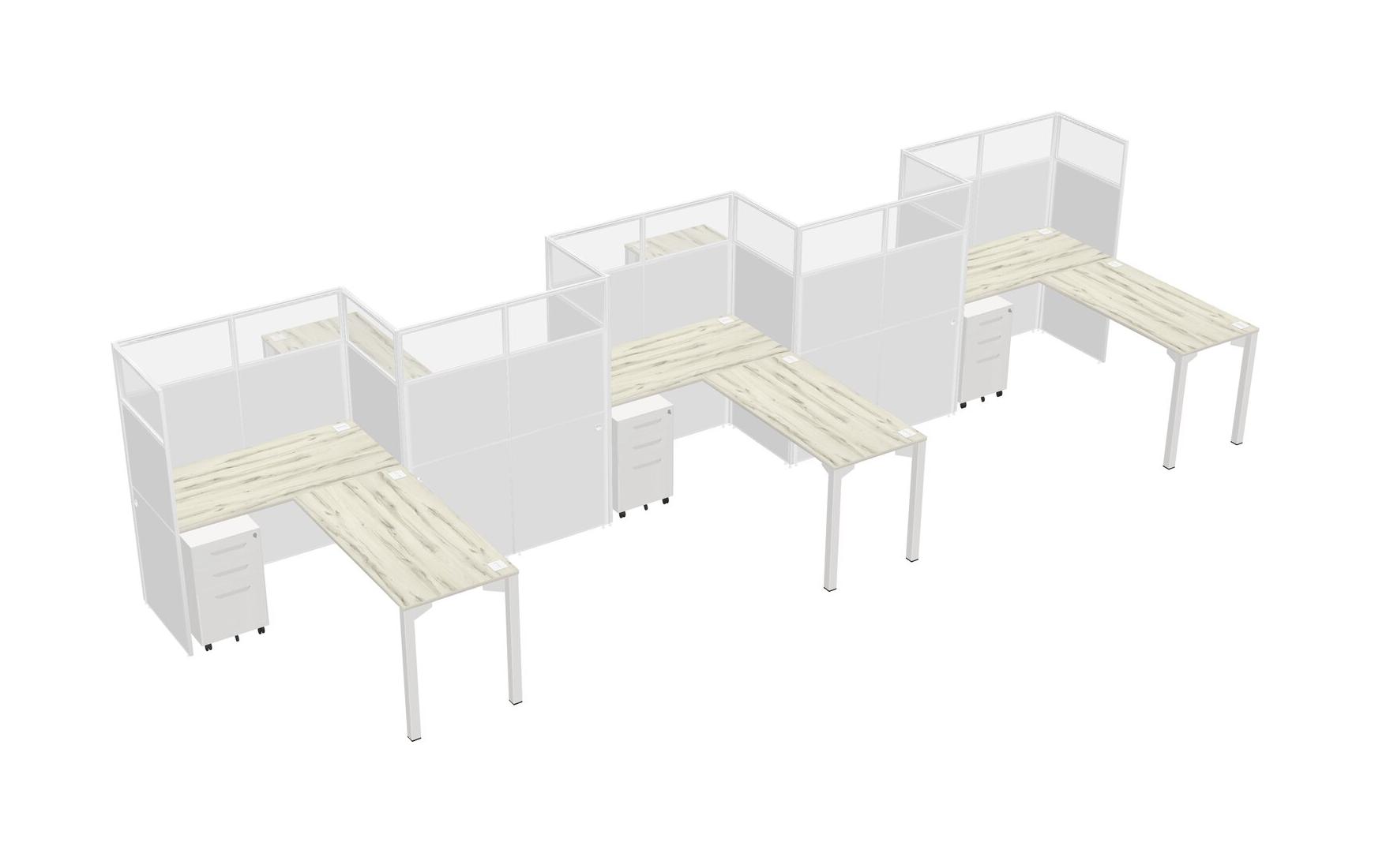Postes De Travail En L Heinne Holz Pour 5 Personnes - Formation En Zigzag + Tiroirs Mobiles En Métal Blanc + Retour De Panneau