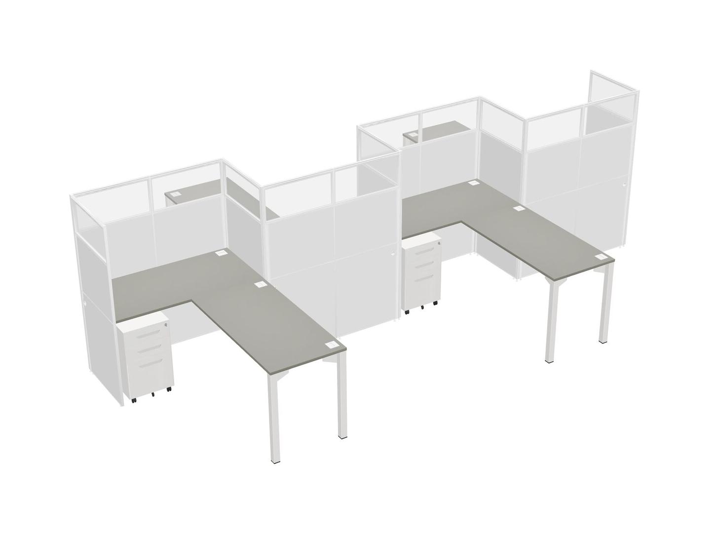 Postes De Travail En L Grey Shadows Pour 4 Personnes - Disposition En Zigzag + Tiroirs Mobiles En Métal Blanc + Retour De Panneau
