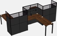 Postes De Travail En L En Noyer Columbia Pour 3 Personnes - Formation En Zigzag + Retour De Panneau