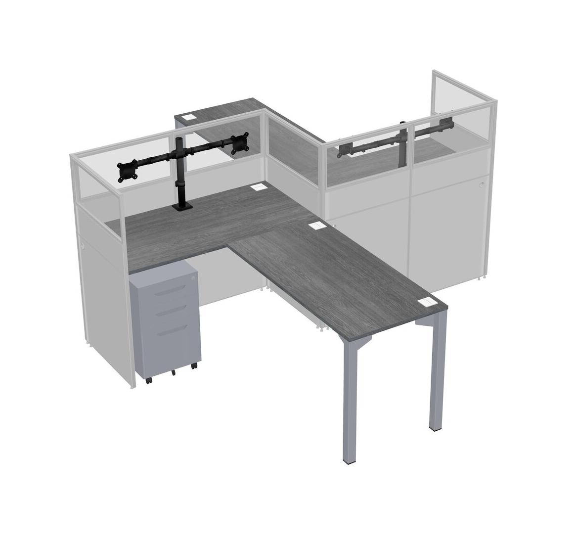 Postes De Travail En L Gris Pour 2 Personnes - Formation En Zigzag + Tiroirs Mobiles En Métal Gris + Retour De Panneau