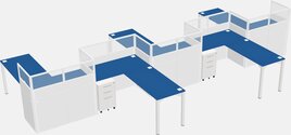 Postes De Travail En L Prism Blue Pour 5 Personnes - Formation En Zigzag + Tiroirs Mobiles En Métal Blanc + Retour De Panneau