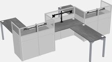 Postes De Travail En L Gris Pour 3 Personnes - Formation En Zigzag + Retour De Panneau