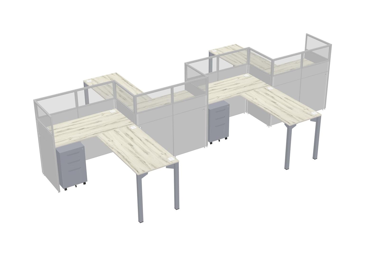 Postes De Travail En L Heinne Holz Pour 4 Personnes - Disposition En Zigzag + Tiroirs Mobiles En Métal Gris + Retour De Panneau