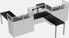 Postes De Travail En L Noirs Pour 3 Personnes - Formation En Zigzag + Retour De Panneau