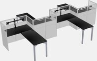 Postes De Travail En L Noirs Pour 4 Personnes - Formation En Zigzag + Retour De Panneau