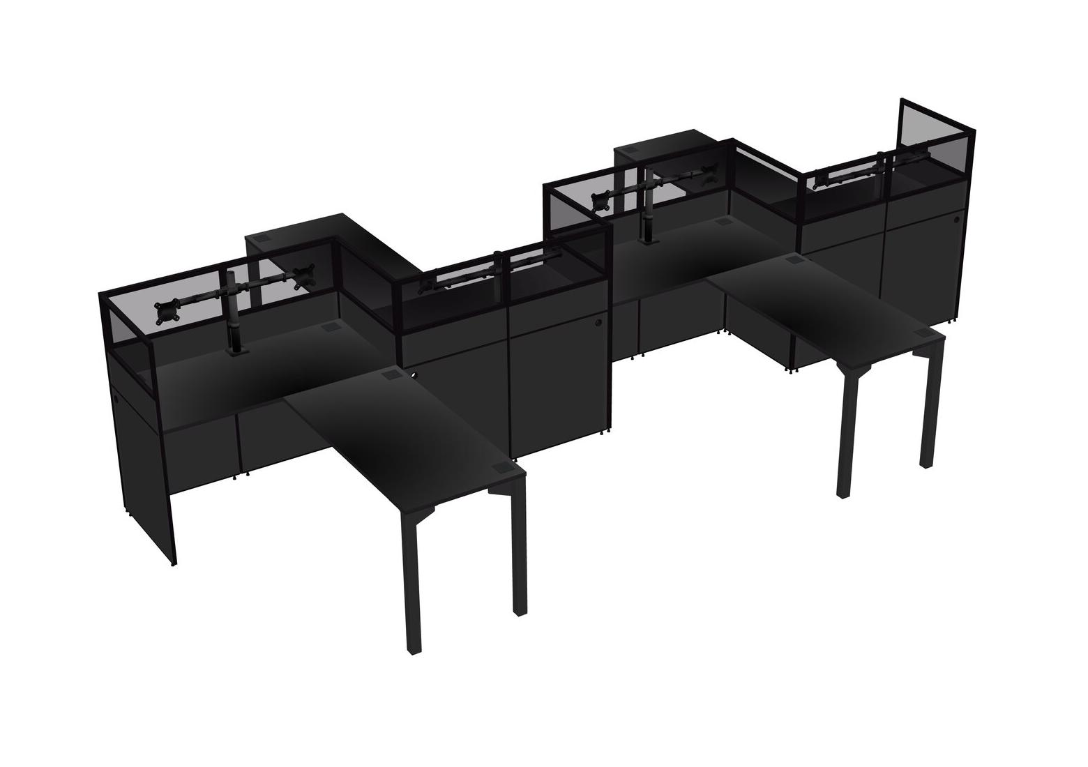 Postes De Travail En L Noirs Pour 4 Personnes - Formation En Zigzag + Retour De Panneau
