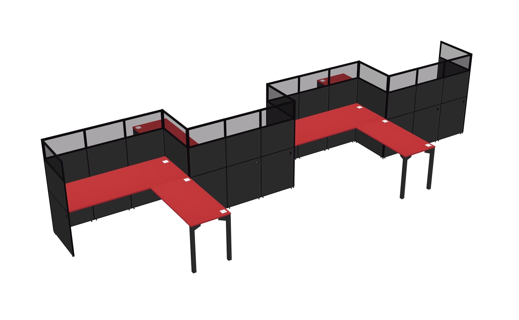 Postes De Travail En L Prism Red Pour 4 Personnes - Formation En Zigzag + Retour De Panneau