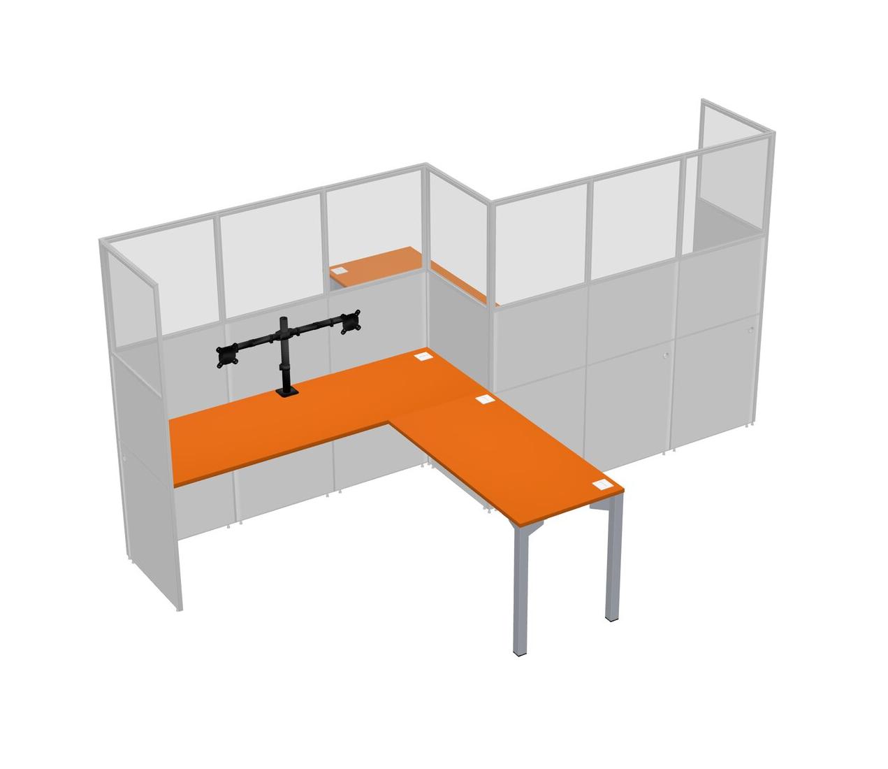 Postes De Travail En L Orange Pour 2 Personnes - Formation En Zigzag + Retour De Panneau