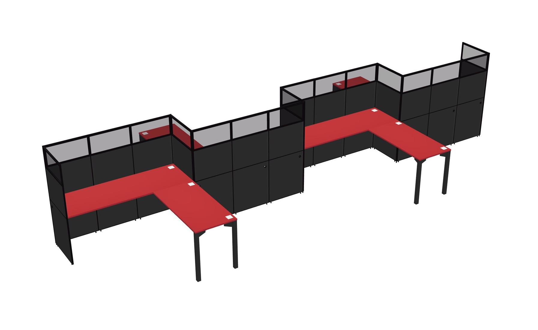 Postes De Travail En L Prism Red Pour 4 Personnes - Formation En Zigzag + Retour De Panneau