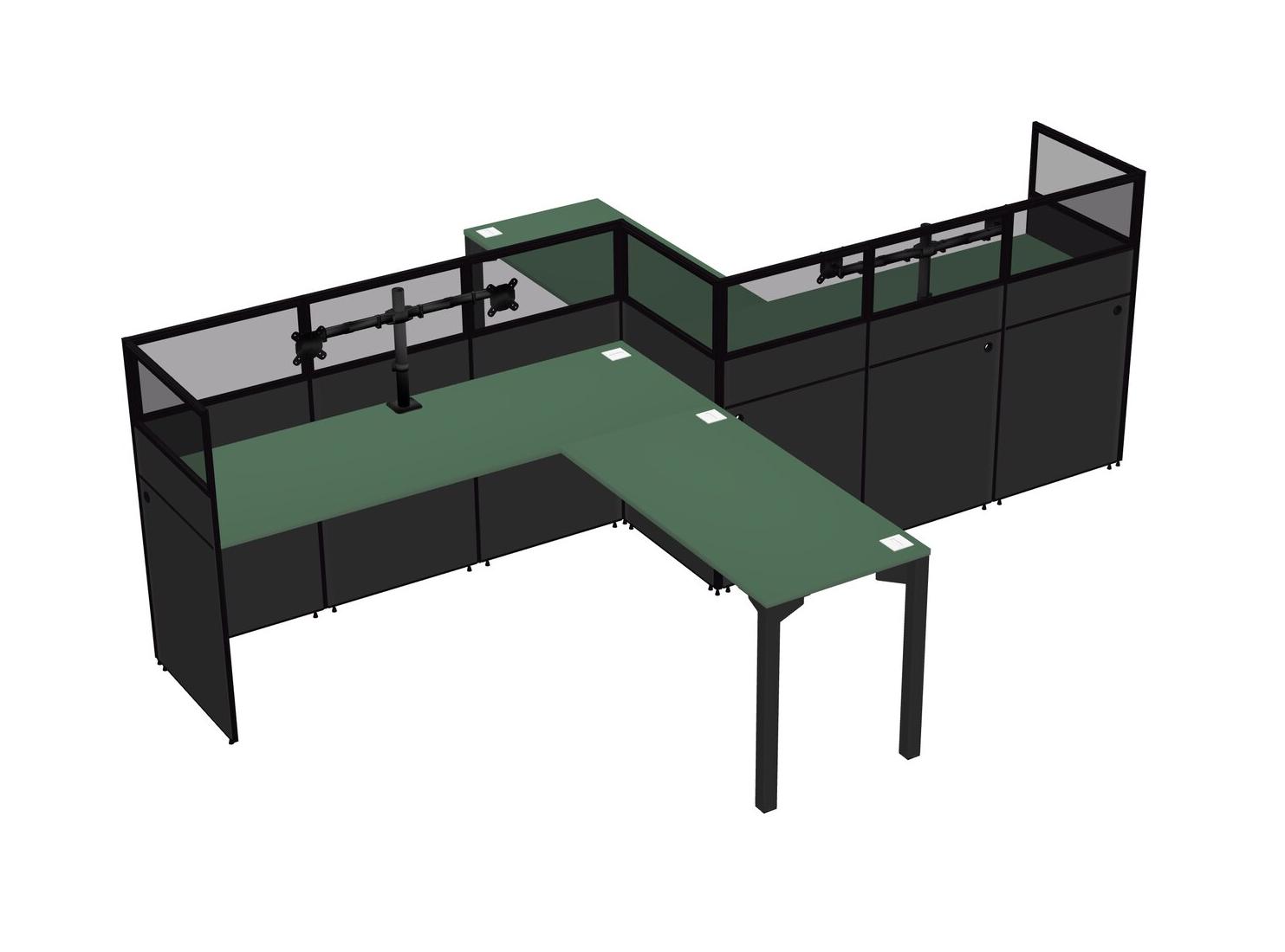 Postes De Travail En L Verts Pour 2 Personnes - Formation En Zigzag + Retour De Panneau