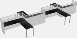Postes De Travail En L Noirs Pour 4 Personnes - Formation En Zigzag + Retour De Panneau