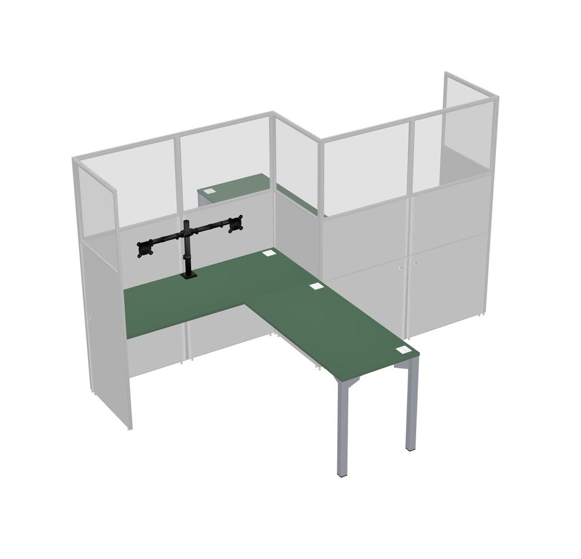 Postes De Travail En L Verts Pour 2 Personnes - Formation En Zigzag + Retour De Panneau