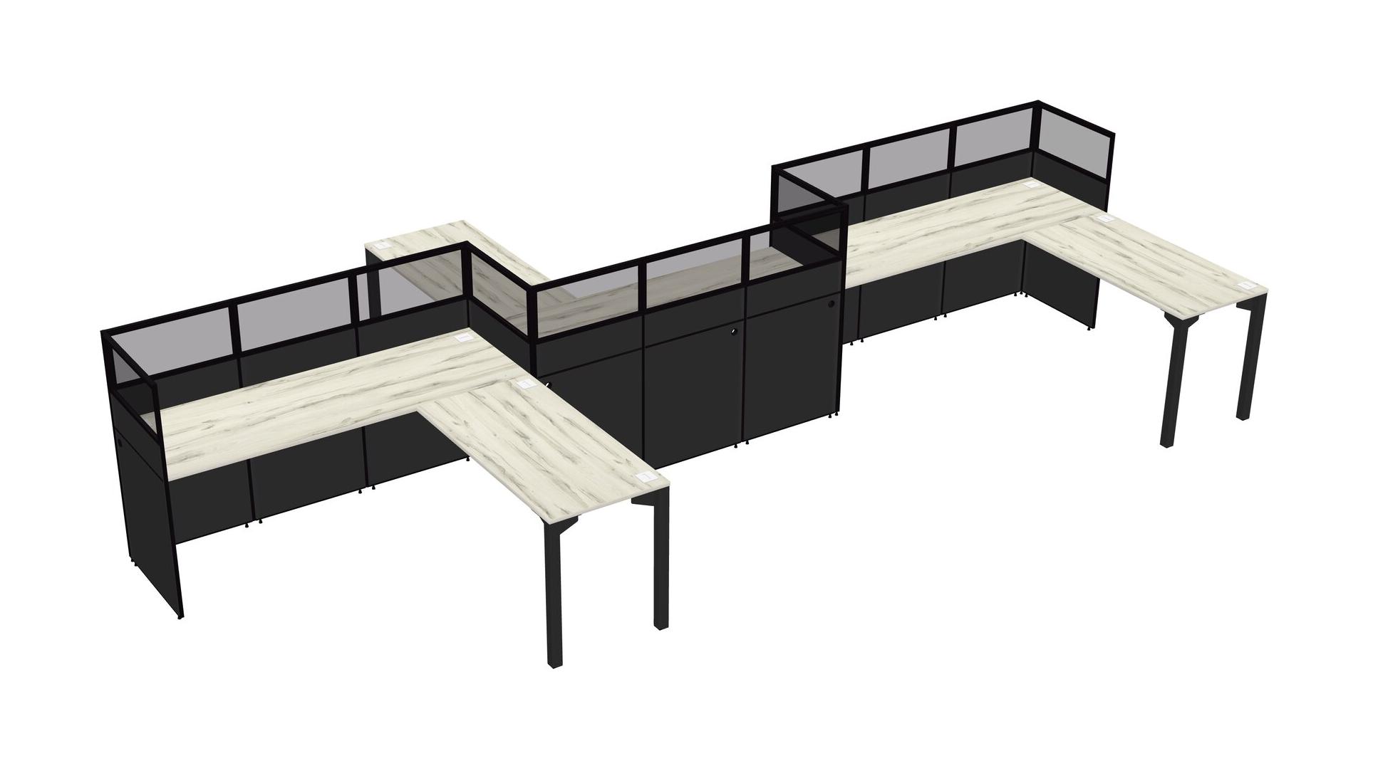 Postes De Travail En L Heinne Holz Pour 3 Personnes - Formation En Zigzag + Retour De Panneau