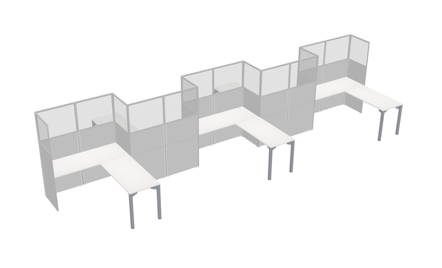 Postes De Travail Blancs En L Pour 5 Personnes - Formation En Zigzag + Retour De Panneau