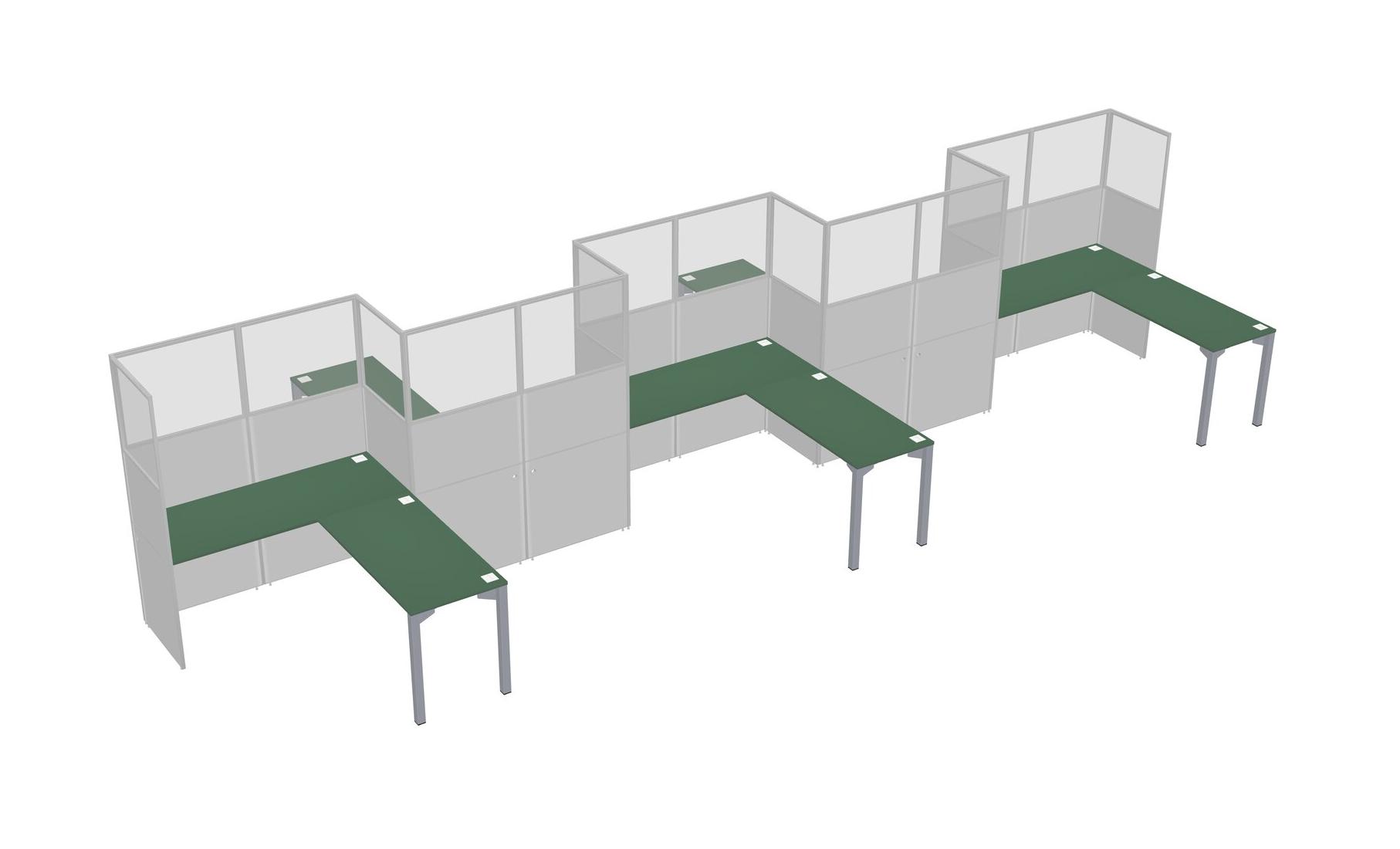 Postes De Travail En L Verts Pour 5 Personnes - Formation En Zigzag + Retour De Panneau