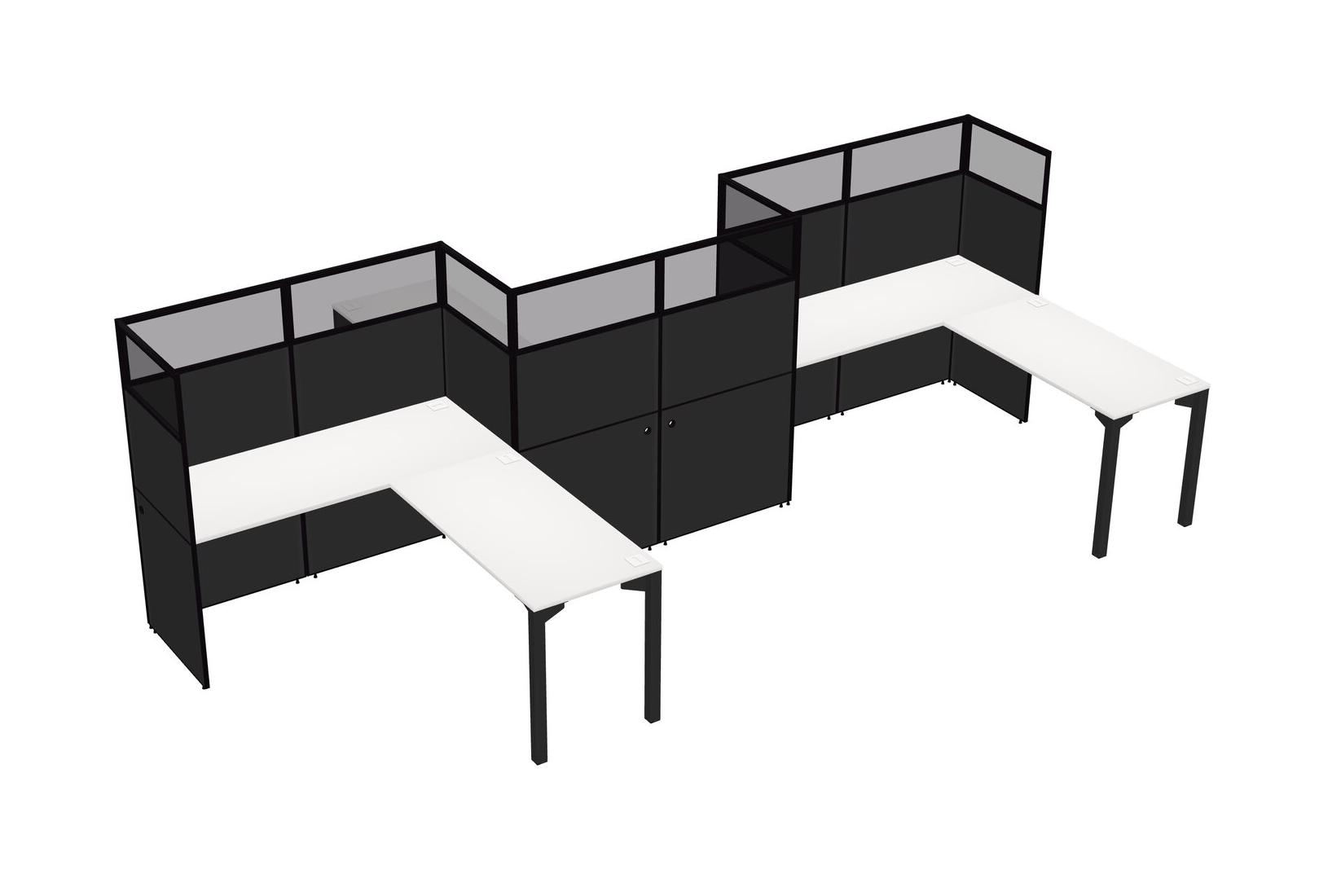 Postes De Travail Blancs En L Pour 3 Personnes - Formation En Zigzag + Retour De Panneau