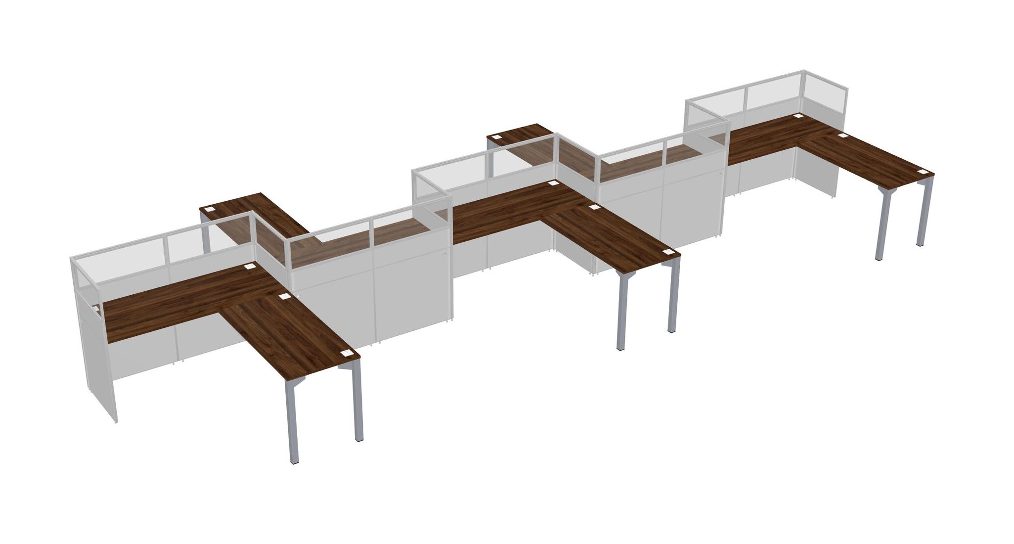 Postes De Travail En L En Noyer Columbia Pour 5 Personnes - Formation En Zigzag + Retour De Panneau