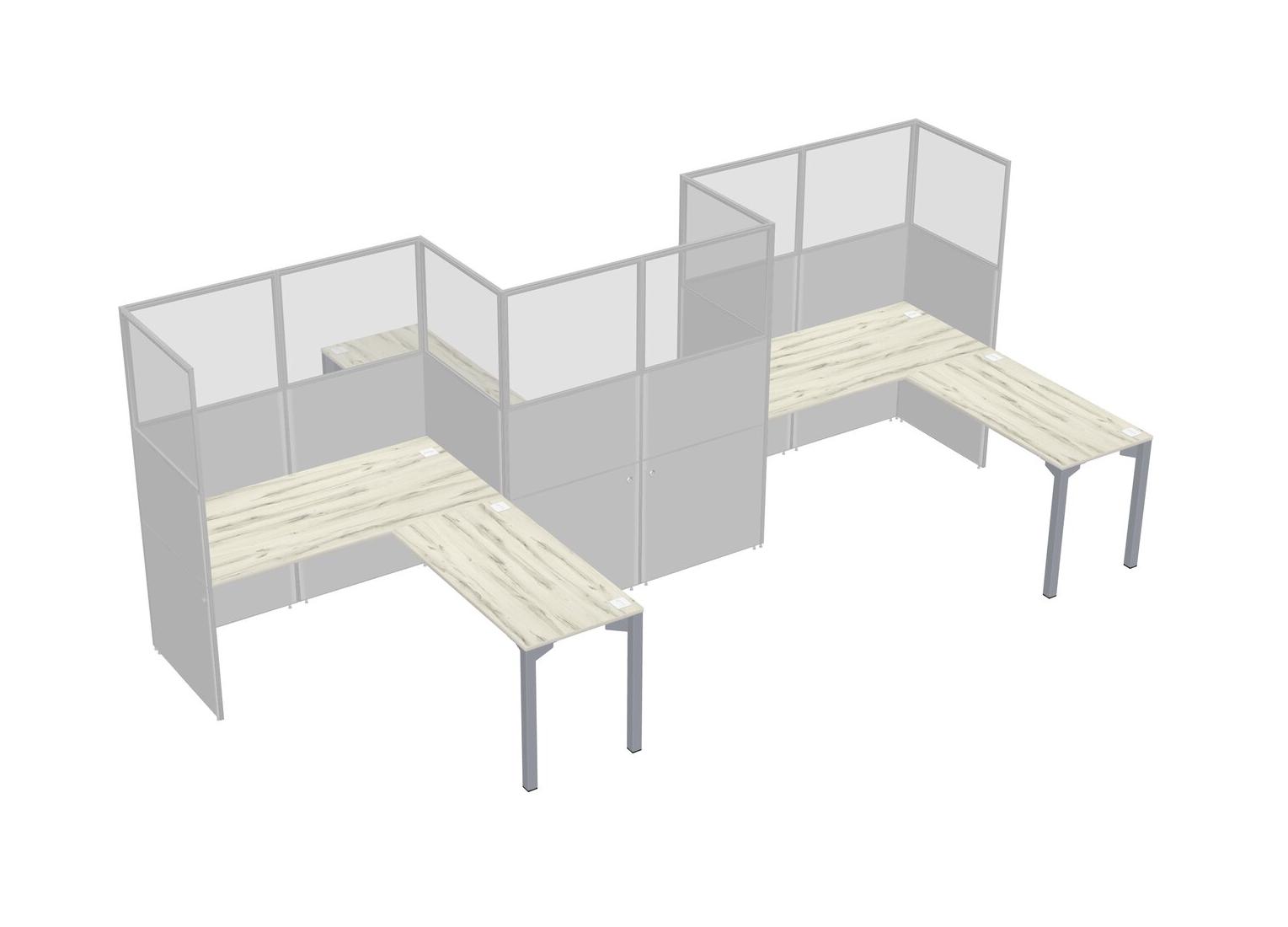 Postes De Travail En L Heinne Holz Pour 3 Personnes - Formation En Zigzag + Retour De Panneau